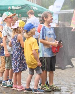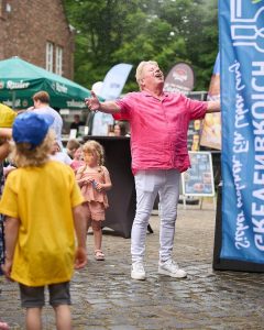 Das bunte Programm bot für jede Altersgruppe etwas: Bereits am Nachmittag sorgte Volker Rosin mit seinem Mitmachkonzert für strahlende Kinderaugen und tanzende Beine. Die vielfältigen Kinderaktionen – von Hüpfburg und Kletterwand über Kinderschminken bis hin zu Luftballonfiguren – verwandelten die Stadtparkinsel in ein wahres Paradies für die Kleinen.